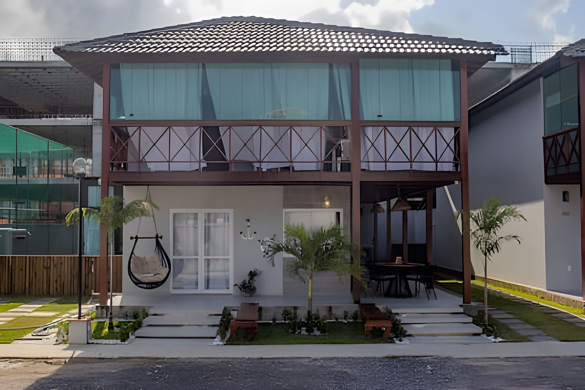 A Casa Hygge está localizada em um condomínio fechado com casas de alto padrão,