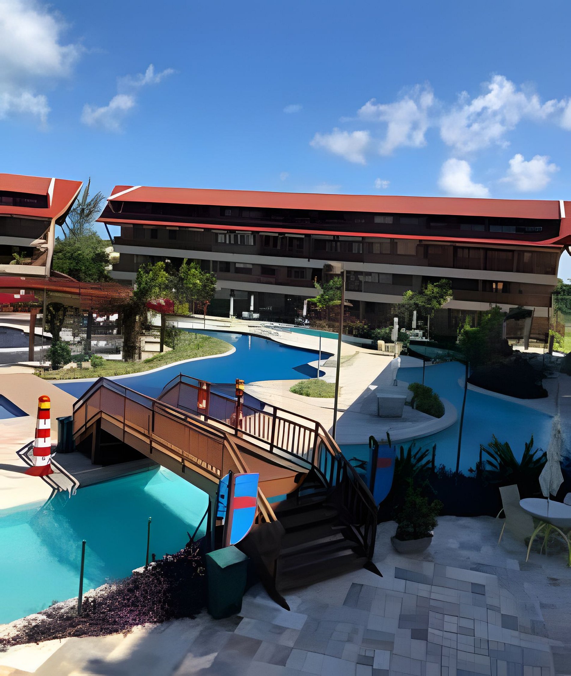 • Sala integrada, cozinha equipada e varanda com vista para as piscinas — ideal para relaxar com um drink após o pôr do sol.