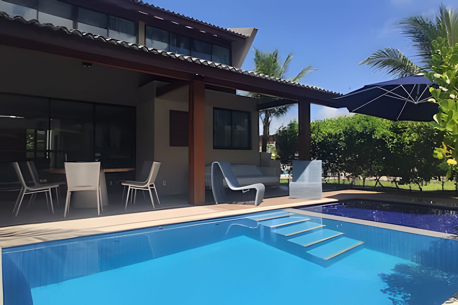 Bangalô com 4 quartos, sendo 3 suítes, piscina privativa, churrasqueira, cervejeira, cozinha completa, quartos com ar condicionado, sala de jantar, sala de estar